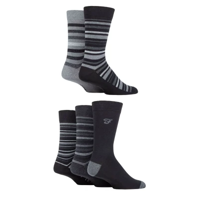 Mens 5 Pair Farah Patterned Striped and Argyle Cotton Socks Stripe Black / Charcoal 6 11