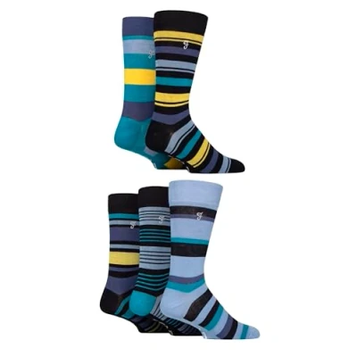 Mens 5 Pair Farah Plain, Striped and Patterned Everyday Bamboo Socks Dark Navy / Yellow Teal 6 11