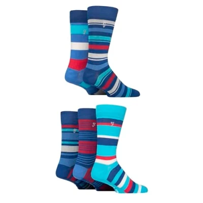 Mens 5 Pair Farah Plain, Striped and Patterned Everyday Bamboo Socks Navy / Cobalt Red 6 11