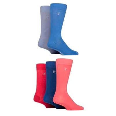 Mens 5 Pair Farah Plain, Striped and Patterned Everyday Bamboo Socks Plain Purple / Grey Peach 6 11