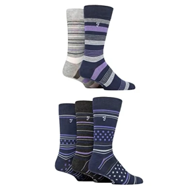 Mens 5 Pair Farah Plain, Striped and Patterned Everyday Bamboo Socks Stripe Dots Navy / Purple 6 11