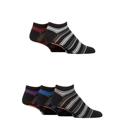 Mens 5 Pair Farah Striped Regenerated Cotton Trainer Socks Black / Stripe 6 11