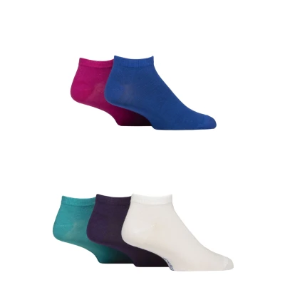 Put some colour and some comfort into your sports shoes with our big five-pair packs of SOCKSHOP Bamboo Striped Trainer Socks! In a choice of multicoloured styles, these low ankle socks have a lively, fun look, and even better, they help feet feel great. Because soft, silky bamboo-based fabric is kind to every type of skin, anyone can wear it. Bamboo has natural breathability and bacteria resistance so feet stay fresher and healthier. As a plant, bamboo helps the environment too. It doesn’t require pesticides, and needs less land and water than cotton crops. Amazingly bamboo fields contributes 35% more oxygen to the atmosphere than the equivalent area planted with trees.
