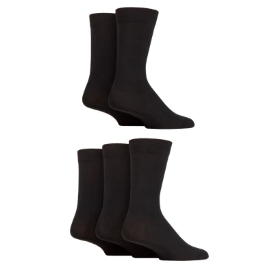Mens 5 Pair SOCKSHOP Plain and Patterned Cotton Socks with Gentle Grip Tops Black 7 11