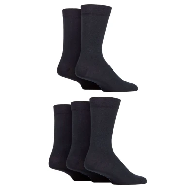 Mens 5 Pair SOCKSHOP Plain and Patterned Cotton Socks with Gentle Grip Tops Navy 7 11