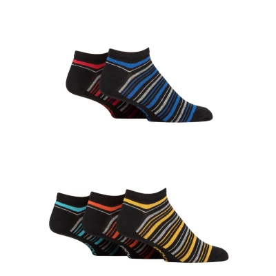 Mens 5 Pair SOCKSHOP Plain Regenerated Eco Cotton Striped Trainer Socks Black Stripe 7 11