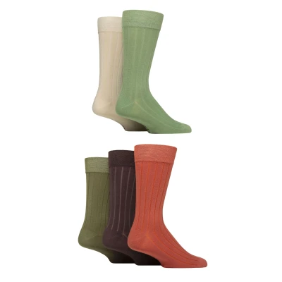 Mens 5 Pair SOCKSHOP Plain, Striped and Patterned Bamboo Socks Wild Terrain Ribbed 7 11