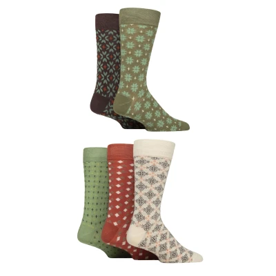 Mens 5 Pair SOCKSHOP Plain, Striped and Patterned Bamboo Socks Wild Terrain Suit 7 11