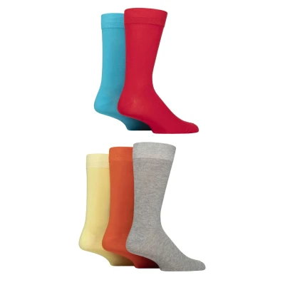 Mens 5 Pair SOCKSHOP Wildfeet Plain Bamboo Socks Red / Blue Grey Orange Yellow 7 11