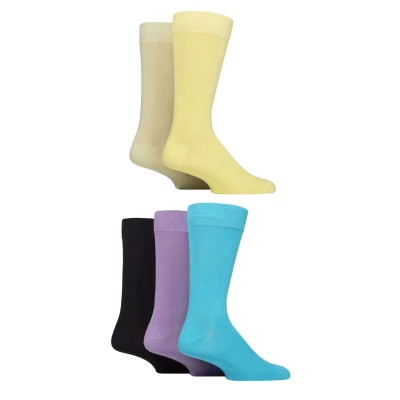 Mens 5 Pair SOCKSHOP Wildfeet Plain Bamboo Socks Yellow / Lime Blue Lilac Navy 7 11