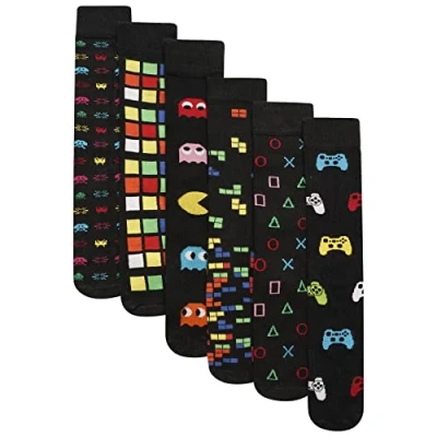 MENS 6 Pack Retro Games Socks Cotton Rich Designer Socks, Multi, UK 11 (EU 39 45)