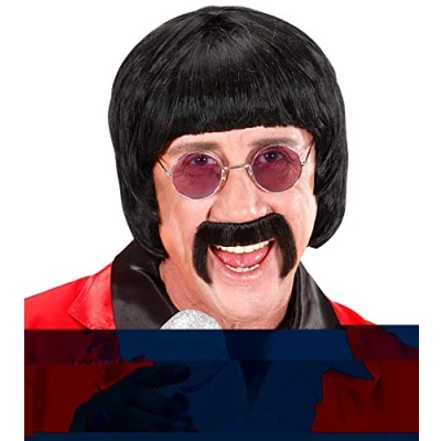 Mens 70s Man & Moustache Black Wig for Hair Accessory Fancy Dress