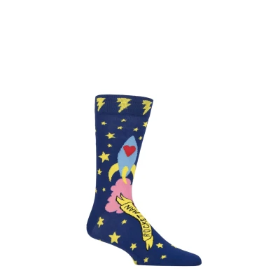 For the Elton John fan, it’s gonna be a long, long time before you see socks like these again! Happy Socks Elton John Rocket Man Socks feature an officially licensed and approved design showing colourful 70s-style art with a rocket blasting off to the stars, and a “Rocket Man” banner on the foot — not to mention the lightning bolts around the cuff… it’s all very understated! These Elton John socks are knitted from a quality, soft combed cotton rich yarn. In a crew length and available for both men and women's, these socks are a fine gauge that makes them lightweight and breathable, with reinforced toes and heels, and smooth toe seams for a comfortable wearing experience. And, if you’re hungry for more Elton socks, you must check out this big six-pair set of Happy Socks Elton John Gift Boxed Socks!