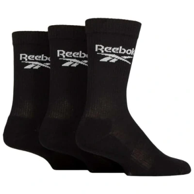 Mens and Women's 3 Pair Reebok Core Ribbed Cotton Crew Socks Black 11 12.5 UK