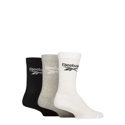 Mens and Women's 3 Pair Reebok Core Ribbed Cotton Crew Socks White / Grey Black 8.5 10 UK