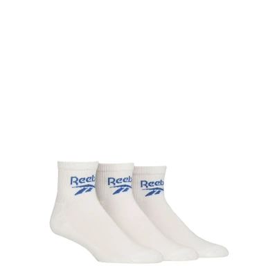 AmazonReebok Unisex 'Foundation' Ankle Socks - Mens & Ladies, Cotton, Cushioned, Plain with Logo, 3 Pair Multipack UK Size Range 2.5-12.5 White 4.5-6 UK