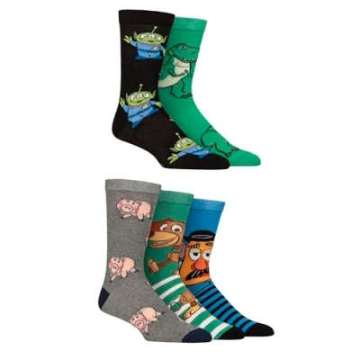Mens and Women's 5 Pair SOCKSHOP Toy Story Slinky, Mr Potato Head, Rex, Ham the Aliens Socks Multi 4 8