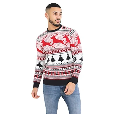 Mens Christmas Threadbare Ho Ho Snow Tree Baked Red Stripe Pattern Novelty Jumper Product Type: Sweater Brand: Mymixtrendz