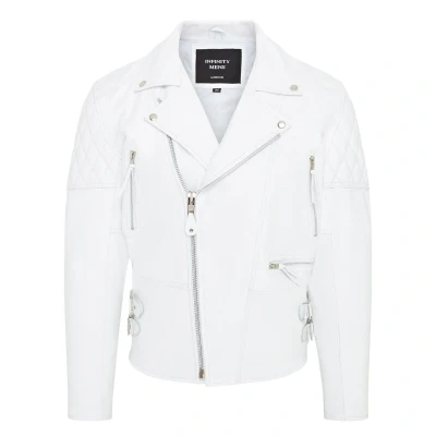 Mens Cowhide White Leather Brando Biker Jacket