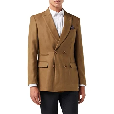 Mens Double Single Breasted Blazer Smart Retro Tailored Fit Coat Classic Suit Jacket[BLZ DB Marco,Tan Camel,44]