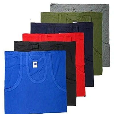 Mens Fitted 100% Cotton Vests Pack of 6 (Medium, Assorted Colours)