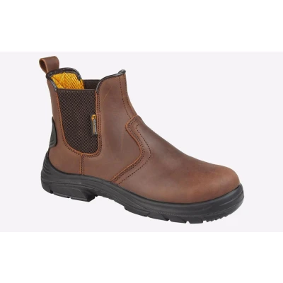 MENS GRAFTERS BROWN LEATHER WIDE FITTING CHELSEA DEALER SAFETY BOOTS M9509B (UK8)
