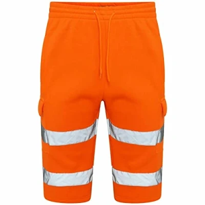 Mens Hi Vis Work Shorts Cargo Multi Pockets Viz Reflective Branded Super Soft Comfy Fleece (Orange, 3X Large)