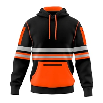 Mens Hi Vis Work Wear Pullover Hoodie Safety Reflective Tape High Viz Sweatshirt Visibility Top Multi Zipper Pockets S 2XL