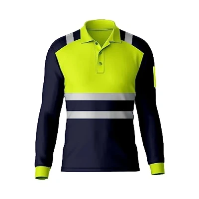 Mens High Visibility Reflective Tape Hi Vis Safety Workwear Polo Shirt Long Sleeve Tee Contrast Tshirt Top Yellow Navy