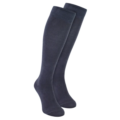 Treat your feet to these amazing long length socks made from natural bamboo materials! These soft and smooth high socks are also super-skin-friendly and healthy. Bamboo materials help the wearer keep feet pleasantly fresh all day, with thanks to the hollow structure of the fibres, making bamboo a super absorbent material. This means that bamboo effectively wicks moisture and sweat away from the skin. Bamboo socks are breathable and up to four times more absorbent than cotton socks. The silky-feel bamboo blend fabric has antibacterial properties which are able to resist odours and fungal formation. These socks also have natural thermal regulation for warm legs and feet, which helps to maintain and regulate normal body temperature. They also feature smooth handlinked toe seams for an additional layer of comfort. Whether you're relaxing around the home or working from the office, these bamboo socks will get you through the day with their effective moisture wicking and breathable properties. These socks feature elasticated comfort cuffs so your legs feel comfortable in wearing these soft socks. Bamboo socks are naturally hypoallergenic and antibacterial. These socks come in a pack of 2 pairs, they are available in the colours of black, navy blue & grey. They’re made from 77% Viscose (from bamboo) 22% Polyester, 2% Elastane, are available in size 6-11 UK, 39-45 EU, 7-12 US and are machine washable..
