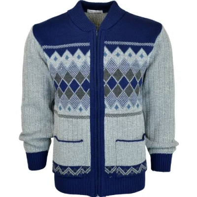 Mens Knitted Cardigan Classic Style Cardigans V Neck Zipper Jumper (X Large, Navy)