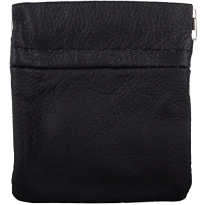 Mens Leather Coin/Money Holder/Pouch/Wallet with Push Clip Fastening Black