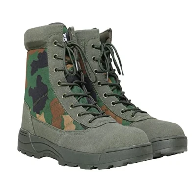 8" High top tactical military boots for men, Lace up and side zip in two camo colours and two plain colours. A lightweight, breathable work combat boots used for security protection These police style boots offer a padding footbed and shock absorbent sole. Mens combat boots sizes 3 UK to 11 UK, ideal in winter autumn and snow. High boots provide protection to the ankle and lower leg. Black boots for men.