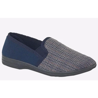 Mens Navy Herringbone Felt Gusset Slipper Charles Size UK 6
