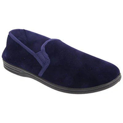 Mens Navy Velour Twin Gusset Slipper Ross Size UK 10