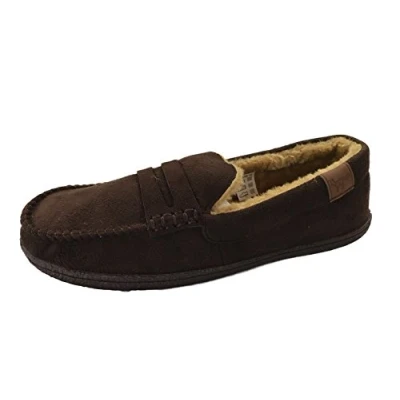 Mens New Hampshire Faux Suede Fur Lined Moccasin Slippers Shoes Size 7 12 (10 UK, Dk Brn)