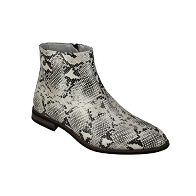 Mens Patent Faux Leather Shiny Snake Skin Print Ankle Boots Zip on Chelsea Dealer Shoes [A2076H WHITE 44]