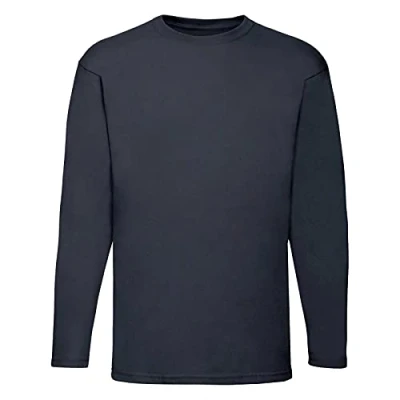 Mens Plain Crew Neck Long Sleeve T Shirt 100% Cotton Tee Top Deep Navy