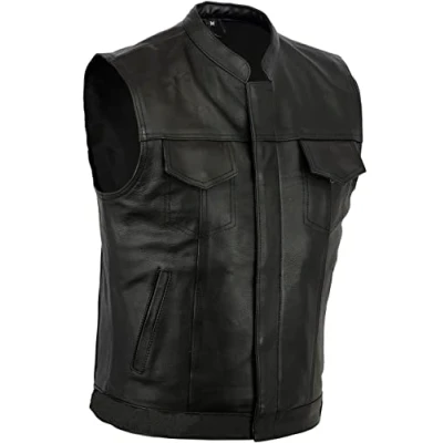 Mens Real Full Grain Leather Sons of Biker Waistcoat Vest Cut SOA Genuine Motorcycle/Motorbike Quality Zipped Pockets 3XL