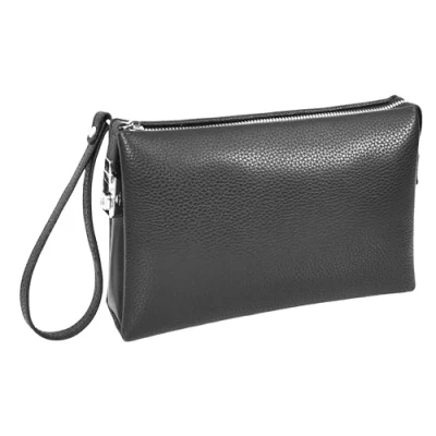 Plain and Elegant Design: With its simple yet sophisticated design, this wrist bag exudes understated elegance, perfect for complementing any outfit. Premium Leather Construction: Made from top-quality real leather, this bag offers durability and a luxurious feel, ensuring it remains a timeless addition to your accessory collection. Enhanced Security: The built-in 2-digit combination zip lock on the main compartment provides added security for your belongings, giving you peace of mind wherever you go. Detachable Wrist Strap: The detachable wrist strap offers versatility in carrying options, allowing you to carry the bag comfortably on your wrist Organized Interior: Inside the main compartment, you'll find a middle zip divider section, perfect for separating your belongings, as well as slots for cards to keep your essentials organized and easily accessible. Measurements - L: 25 x H: 16 x W: 5 cm. 100% Real Leather.