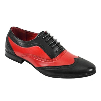 Mens Retro Vintage 1920's MOD 2 Tone Leather Brogue Lace up Smart Spat Shoes[A1944H BLACK RED,Black Red,UK 8 EU 42]