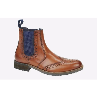 Elevate your wardrobe this season with these Roamers Newburgh men's chelsea boots, featuring intricate stitching and punch-hole detailing, with navy twin gussets for an added design flair.- Burnished Softie Leather - Navy twin gussets for easy on / off wear - Brogue detailing and intricate stitching - Heel tab - TPR Sole
