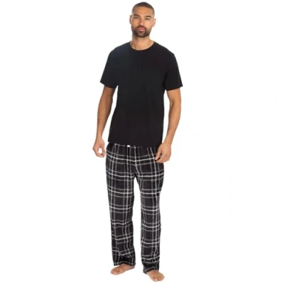 Mens Short Sleeve Pyjamas Set Cotton Rich Top Brushed Fleece Bottoms Pants PJ Pajamas Loungewear/Nightwear Gift (Black Large)