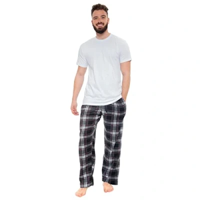Mens Short Sleeve Pyjamas set Cotton Rich Top Brushed Fleece bottoms Pants PJ Pajamas Loungewear/Nightwear Gift (White Large)