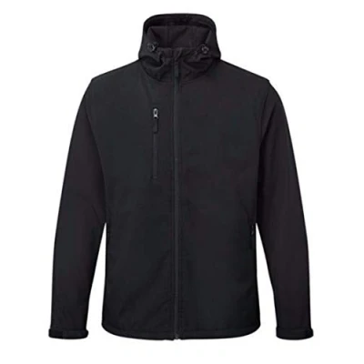 Mens Softshell Fleece Waterproof Windproof Fabric Thermally Lined Jacket Warm Comfortable Casual Soft Full Zip Side Pockets Suitable for Work Leisure Workwear Walking XXL (Hood) Black