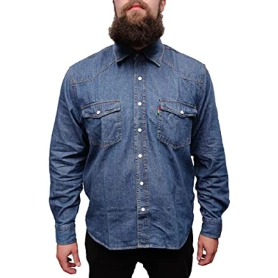 Mens Stonewash Blue Denim Shirt (6XL)