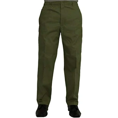 Mens Straight Legs Casual Elasticated Waist Rugby Trouser Men Plain Regular Office Pants Smart Cargo Combat Pant Size UK 30 36 / Length 27,29,31 (Waist 36" 27" S, Olive)