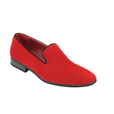 Mens Suede & Shiny Patent Leather Line Slip on Loafers Casual MOD Driving Shoes [Red Suede,UK 10 EU 44]