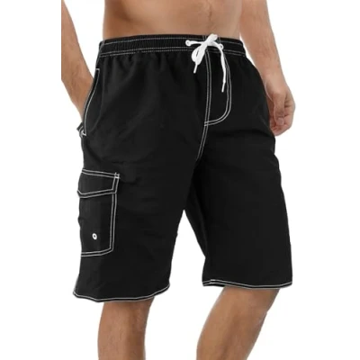 【Fabric】:100% Polyester.11inch inseam. 【Quick dry &Water Resistent Fabric】:Super quick dry fabric, smooth and lightweight. Normally your trunk will be dry in 10 minutes.keep you dry and flexible workout, lightweight and efficient breathable 【Elastic waistband with drawstring】: drawstring can be used freely adjustable tightness according your waist.There are four sizes S/M/L/XL/2XL/3XL available for you,Just choose the suitable size 【Mesh lining and three pockets】:lining soft & comfortable; Two side pockets for safer storage.With two pockets on each side and one more backside pocket, you'll enjoy the safe and relaxed feeling when you dress this mens swim trunk 【Ideal Gift Choice】:This mens swim trunk could be a perfect gift to yourself, boyfriend, father or others. Suitable for swimming, beach surfing, running, ball sports, at home and etc.Please contact us if you have any question.