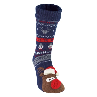 Mens Thermal Rudolph Christmas Slipper Socks 3D design Fleece Lined Winter (7 11, Navy)